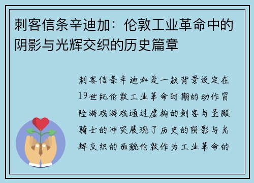 刺客信条辛迪加:伦敦工业革命中的阴影与光辉交织的历史篇章