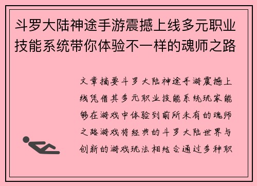 斗罗大陆神途手游震撼上线多元职业技能系统带你体验不一样的魂师之路
