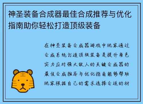 神圣装备合成器最佳合成推荐与优化指南助你轻松打造顶级装备